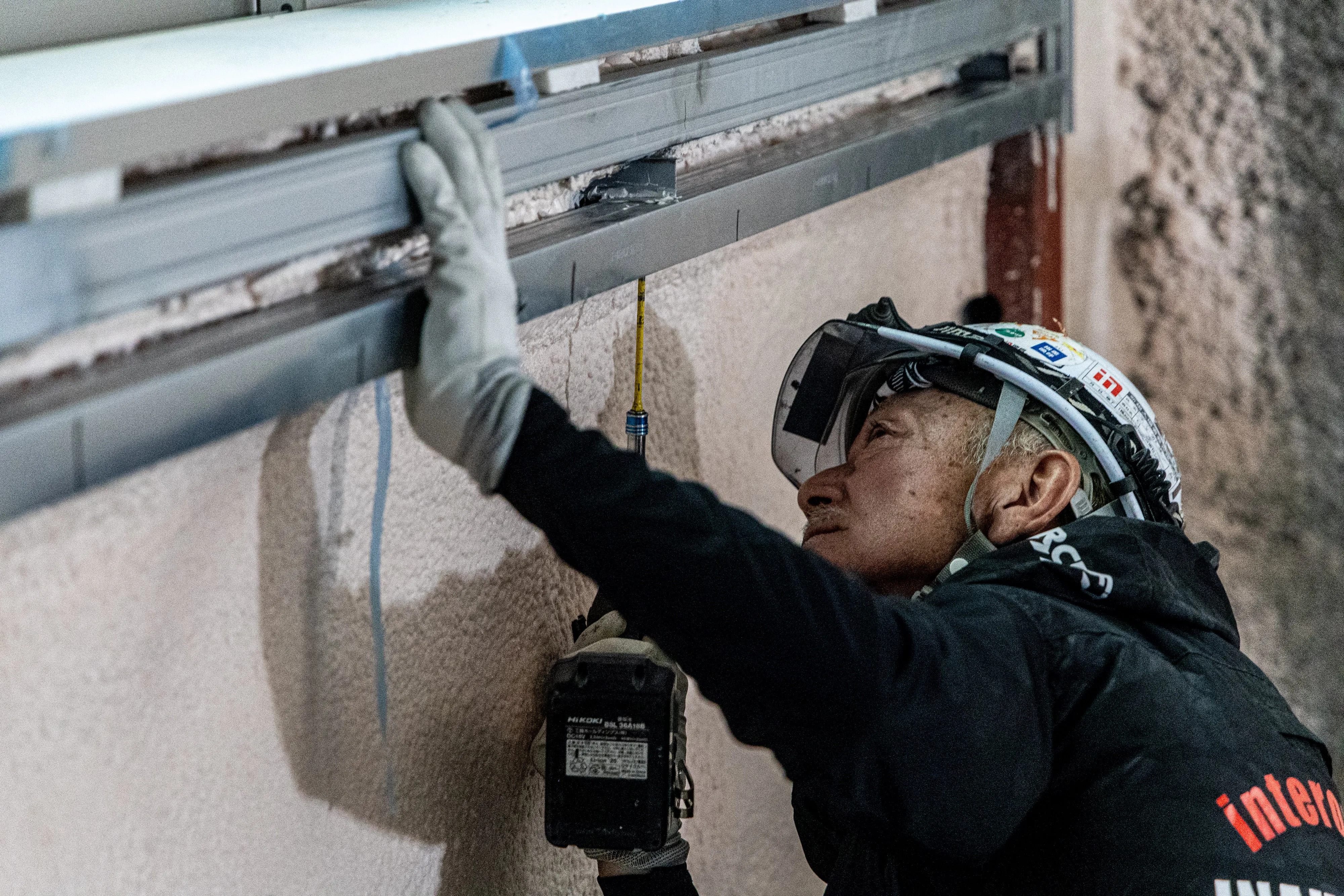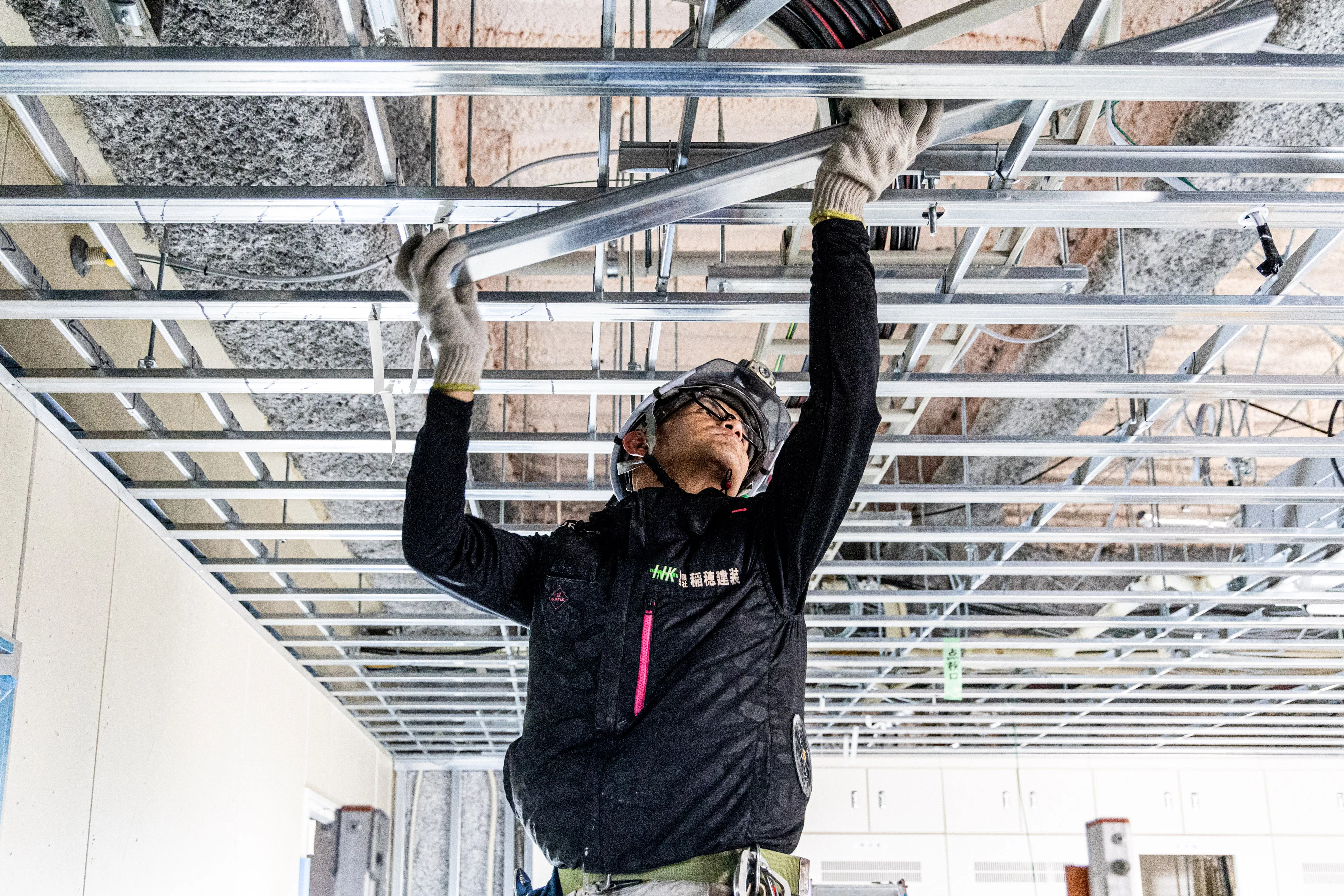 組立工事当社では、この基幹となる軽量鉄骨下地工事を、長年のキャリアと豊富な知識を持つ経験豊富な職人が担当いたします。