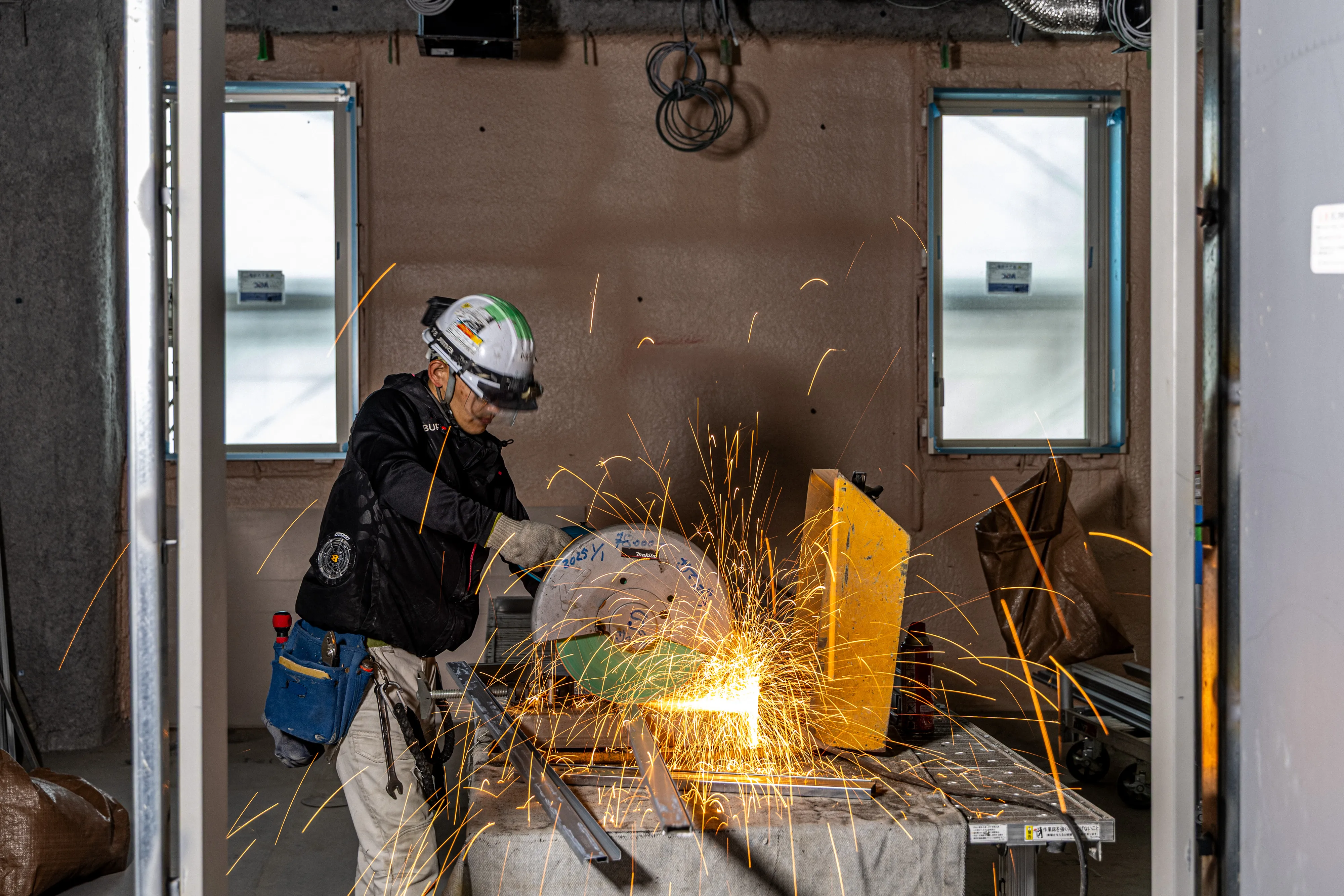 お客様から提供された設計図や施工図を深く読み解き、ミリ単位の正確さを追求しながら、確かな技術で施工を実施します。単に骨組みを組むだけでなく、耐震性や遮音性といった建物の性能を最大限に引き出すための専門的なノウハウを駆使し、高い品質基準を満たした下地を構築します。